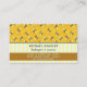 Estas bellas tarjetas de visita cuentan con arte original de abejas y son perfectas para un apicultor | vendedor de miel | creador de velas de cera de abejas y profesiones relacionadas. La parte delantera muestra una abeja más grande en forma de peine de miel con un patrón de fondo de peine de miel hecho a mano. El borde inferior tiene un motivo a rayas en tonos amarillos, grises y azul claro. La parte trasera tiene un patrón de abejas más pequeñas con un borde a rayas. Utilice las plantillas sencillas para agregar el texto personalizado. En la parte delantera, hay plantillas para el nombre de la granja de abejas y su sitio web. La parte posterior tiene espacio para su nombre y título, además de la dirección y el número de teléfono de su empresa. Si desea realizar cambios más detallados, también puede "personalizar" más adelante. Cada elemento de estas tarjetas se puede reorganizar y cambiar de tamaño por separado. Atrapa el ojo de sus clientes con estas dulces tarjetas de visita para los apicultores.