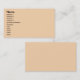 Tarjetas de visita beige bonitas del color que para requisitos particulares usted puede modificar con su propia información, tipo de la fuente, y color de la fuente.