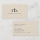 Tarjeta De Visita Beige Linen Minimal Monogram Clean Professional