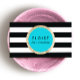 Diseño elegante y ondulado de imagen digital del logotipo del círculo de la secuencia de oro rosa con fondo azul turquesa claro sobre rayas negras y blancas. Marca ideal para peluquerías, spas, cosmetólogos, esteticistas, estudios de danza, tiendas infantiles, estilistas de pelo y moda o cualquier otro profesional que conozca la imagen.