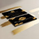 Glamoroso diseño de tarjetas de visita de artista de maquillaje de belleza negro y dorado con finos labios de oro y broches de maquillaje de oro. Personalizar con nombre y título de la empresa. El reverso presenta un diseño negro audaz con trazos de pincel de maquillaje en oro falso para añadir un glamoroso pop de color y brillo. Personalice la información de contacto. Puede personalizar el tamaño del texto, el tipo de letra, los colores y el color de fondo para adaptarlo a sus preferencias personales.