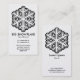 Una elegante plantilla de tarjeta de visita con un motivo de copo de nieve de efecto 3d. Información principal de la empresa en la parte delantera, con nombre y datos de contacto personales en la parte posterior.