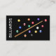 Billiards or Snooker theme business cards created with a spread of billiards balls and a pool cute on the front and your contact or business details or organized in a custom layout on the flip side.