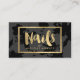 Tarjeta De Visita Black Floral Gold Text Nail Salon