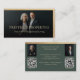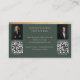 Make a lasting impression with our prestige luxury realtor law firm gold & black luxe business card, designed for two realtors who value sophistication and style. The front features a full photo layout framed with an elegant faux gold corner accent along the top and right edges, complemented by your company name and tagline placed over a subtle black transparent overlay for easy readability. The reverse side is thoughtfully designed for two agents, allowing you to showcase individual photos, QR codes for direct contact access, and essential business details such as address and phone number placed neatly in the center. A sleek faux gold stripe completes the luxurious design. Fully customizable, this template lets you personalize colors, fonts, images, and details to match your brand perfectly. Ideal for real estate professionals, law firms, and business executives seeking a refined, high-end look, this card combines modern elegance, functionality, and timeless sophistication in one striking design. Design and layout by ©Moodthology Papery