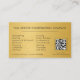 Give your construction business a bold, modern, and professional look with this black and gold metallic QR code business card. Designed for contractors, builders, engineers, architects, and construction service providers, the metallic gold accents pair with the deep black background to create a strong industrial aesthetic that communicates reliability and craftsmanship. The integrated QR code makes it easy for clients to instantly access your website, estimates, portfolio, or contact page. Clean typography and a sharp layout ensure your company name, title, and details are crisp and easy to read. Fully customizable and print-ready—perfect for jobsite networking, client meetings, proposals, inspections, and everyday business branding.