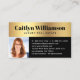 Presenta tu mejor auto a tus clientes. Un sencillo, negro, moderno icono de la casa y una tipografía audaz y blanca sobre una banda negra superponen un falso fondo de Relieve metalizado dorado en el frente de esta moda, elegante, gráfica tarjeta de visita. La foto de su personalizado está en la parte trasera. Personalice su nombre completo y su negocio en la parte delantera. Rellene la parte trasera con la foto de su elección, números de teléfono, dirección, correo electrónico, sitio web y cuentas de medios sociales. Hace una declaración moda, profesional y elegante dondequiera que vayas. En esta colección también se encuentran disponibles otros suministros inmobiliarios de coordinación, como carpetas, tableros, planificadores y más. Sólo tienes que añadir tu foto y escribir tu nombre, nombre comercial y toda tu información adicional en la sección "Personaliza esta plantilla", y puedes personalizar fácilmente esta tarjeta de visita de fotos. Por favor, envíame cualquier pregunta o petición.