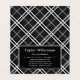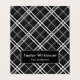 This elegant and modern business card features a black and white plaid background. The text combines modern sans serif fonts for a classy and sophisticated look.