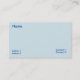 Tarjeta de visita en blanco azureco ( #D2E5EB ), una sombra clara de color sólido azul y fuentes azul profundo. Diseño sencillo y a la moda de Alma Wad. Personalice ambos lados de ahora. Viene 100 en un paquete.