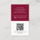Color blanco y burdeos o personalizado, diseño moderno, profesional de tarjetas de visita con campos de plantilla para el nombre, el nombre/título de la empresa, logotipo (foto u otro gráfico), código QR e información de contacto, incluidos iconos de medios sociales. Cambiar el color de fondo, mover y cambiar el tamaño de los elementos con la herramienta de personalización.