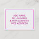 Elegante tarjeta de visita blanca con marco rosa. Haga clic en el botón personalizar para cambiar la posición de la redacción, así como el color y el tipo de letra de las letras.