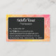 Esta tarjeta de visita personalizada cuenta con círculos inspirados en el mandala blanca, situados sobre un vibrante arcoiris mezclado en amarillo, naranja y rosa. Es una celebración de un fondo luminoso y colorido. Su nombre, profesión o título, teléfono, sitio de medios sociales, correo electrónico, sitio web y dirección de negocios se pueden introducir fácilmente con la plantilla. Cambie el texto y las fuentes a un estilo y color de su elección.