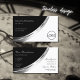 Tarjeta De Visita Blanco y negro con decoración y logotipo plateado