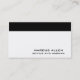 Un fondo blanco llano con una frontera negra en el top, su nombre y cargo en la esquina derecha más baja, el resto del Info está en la parte trasera.