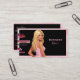 Señora de maquillaje rubio, los colores son negros y rosados.