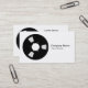 Una plantilla de tarjeta de visita con un motivo de cinta de grabación en negrita, creando un diseño moderno y limpio adecuado para muchos tipos de negocios. Nombre de la empresa y negocio en la parte delantera de la tarjeta. Nombre, dirección, telefonía, correo electrónico y dirección web al revés con una repetición del motivo. La tarjeta también se puede personalizar más.