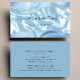 This elegant modern business card features an image of pastel blue silk, framed on the top and bottom by blue watercolor agate borders trimmed with sparkly silver faux glitter. Personalize it with your name in off-black handwriting-style script and your business information in sans serif font. The reverse is a coordinating shade of solid blue. Ideal for hair stylists, makeup artists and aestheticians.