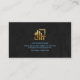 En la parte superior está tu prestigioso nombre, título de trabajo y un comentario de pie de página para anunciar tus servicios. A la derecha hay un falso logotipo de casa dorada que puede utilizar.