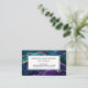 Elegante tarjeta profesional de negocios con su nombre, título o profesión e información de contacto de negocios con coloridos tonos de agate azul, púrpura y agua con venas metálicas de Relieve metalizado de oro y estrellas brillantes. Un fondo de coordinación está en la parte posterior de la tarjeta.