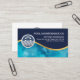 A modern professional, creative card. At the top is a dark blue layer with a gold wave that demarcates a lower blue water grunge design.