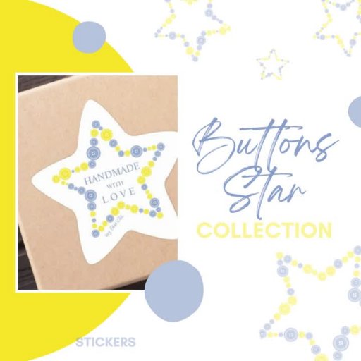 Our Blue & Yellow Original Buttons Star business cards stand out for their eye-catching design, adorned with blue and yellow buttons arranged in a captivating star pattern. In the center of each card is the elegant blue text "Handmade with Love," testifying to your dedication to excellence.