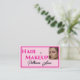Tarjeta De Visita Blush Pink Black Script Photo Makeup Business Card