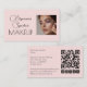 Tarjeta De Visita Blush Pink Script Social Icon QR Code Photo Makeup