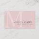 Tarjeta de presentación de negocio de cabello y maquillaje con monograma inicial rosa Chic Blush... Nuestra tarjeta de presentación femenina y chic presenta un monograma inicial "M" en rosa pálido sobre un fondo rosa blush. El texto en ambos lados de la tarjeta es de un color gris elegante para complementar el estilo monocromo de moda. El texto de muestra actualmente dice "estilismo de cabello y maquillaje" pero puede revisar esto y todo el texto en ambos lados de la tarjeta utilizando la plantilla de personalización.