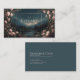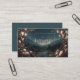 Define your brand with the ethereal romance and magic of a moonlit night using this captivating business card. The design centers on a stunning nocturnal landscape painting, where sharp, misty mountains frame a deep valley containing a calm, reflective body of water. The twilight sky, rendered in deep blues and greens, features a striking crescent moon and scattered stars, adding a touch of celestial magic. The entire scene is richly framed by an abundant border of vintage-style roses in soft blush pink and muted burgundy, complemented by dark, lush foliage. A clean metallic gold rectangular frame highlights the center, providing a sophisticated window for your key information. This artwork beautifully merges the quiet grandeur of classical landscape painting with delicate, romantic botanical detail, resulting in a powerful and truly unique brand statement. This business card is ideally suited for a luxury perfume artisan promoting exclusive, complex scents, an independent creative director specializing in dreamy, narrative-driven branding, or a vintage fashion designer whose collection is inspired by dark romance. It would also perfectly suit a boutique hotelier wanting to convey a picturesque, tranquil setting, or a fine art photographer specializing in moody landscapes.