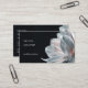 This professional business card features a dramatic high-contrast design with a large, detailed silver-gray floral bloom against a deep black background. Subtle rose-tinted highlights within the petals add a touch of warmth to the monochromatic palette. The clean white typography provides excellent readability for the wedding planner title and contact details. This card is ideal for event coordinators, floral designers, or professionals in the luxury wedding and bridal industry seeking a sophisticated and modern aesthetic.