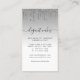 Esta elegante tarjeta de presentación de panadería incluye un ilustracion de pasteles turquesa y boda plateado sobre un fondo gris plateado oscuro, con un borde superior de purpurina de imitación plateada. Personalizar con el nombre de su negocio en escritura a mano negra con cambios al principio y al final, y su información de contacto en el tipo de letra sans serif negro. (Para mantener los cambios, reemplace sólo las letras de esos campos de texto, dejando los símbolos en su lugar.)