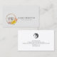 Hermosos y elegantes girasoles y follaje de estilo bohemio forman una corona alrededor de las letras monográficas de la parte inferior izquierda. Su nombre y título aparecen en la parte inferior derecha de la tarjeta. El fondo es una textura de grano de papel. Diseño perfecto para las mujeres, temas delicados y relacionados con el arte. Profesionales o negocios sugeridos: Sommelier, Wedding Planner, Retail, Consultant, Consutancy, Beauty, Personal Development, Florist, Event Planner, Photography, Make Up Artist, Hair Stylist, Nail Technician, Beautician, Cosmetólogo, SPA Salon Store y más