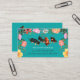 Dachshund Doxie cachorros mascotas servicios de sentada personalizable tarjeta de visita de arte fino con un fondo azul verde azulado y coloridas gargantas de flores silvestres color boho. Este diseño presenta una imagen restaurada de cachorros de Dachshund de "Curious Dachshund Puppies...", un aceite de 1917 sobre una pintura de panel del famoso pintor de retratos mascotas austríacos Karl Reichert, 1836-1918. Puede cambiar fácilmente el color de fondo, la ortografía del texto; el estilo del tipo de letra, el color y el tamaño con los botones Editar diseño y Personalización de Zazzle.