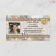 Tarjeta de visita con diseño de moda boho con encaje metálico dorado sobre lienzo con fondo de cristal. Se añaden varias plantillas: código QR, logotipo y medios sociales. Se pueden personalizar y reemplazar los iconos de los medios sociales con los iconos de los personalizados. En la parte de atrás también hay espacio para tu propia foto. Una moderna tarjeta profesional para cualquier persona que crea productos artesanales o regalos hechos a mano.