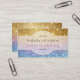 PALETA DE COLOR: color dorado metálico, COLECCIÓN DE DISEÑO acuático: Una tarjeta de visita a juego para los negocios que son femeninos, elegantes y que necesitan proyectar una imagen hermosa y glamurosa. Diseñado para coincidir con la opción de invitación Ticket Stub Corner Style, este diseño se ha creado con un magnífico dorado cálido que se desvanece al azul y a continuación una brillante imagen de Bokeh con un aspecto purpurina. La bella caligrafía de desplazamiento florece en la parte superior e inferior de tu nombre de negocio en un sutil marco redondo superior e inferior. Estilo ostentoso moderno y moderno, femenino. Ideal para planificadores de eventos, coordinadores de bodas, cosmetología, servicios profesionales y diseño interior y de moda de gama alta.