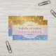 PALETA DE COLOR: color dorado metálico, COLECCIÓN DE DISEÑO acuático: Una tarjeta de visita a juego para los negocios que son femeninos, elegantes y que necesitan proyectar una imagen hermosa y glamurosa. Diseñado para coincidir con la opción de invitación Ticket Stub Corner Style, este diseño se ha creado con un magnífico dorado cálido que se desvanece al azul y a continuación una brillante imagen de Bokeh con un aspecto purpurina. La bella caligrafía de desplazamiento florece en la parte superior e inferior de tu nombre de negocio en un sutil marco redondo superior e inferior. Estilo ostentoso moderno y moderno, femenino. Ideal para planificadores de eventos, coordinadores de bodas, cosmetología, servicios profesionales y diseño interior y de moda de gama alta.
