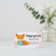 zorro adorable y lindo con bolas de hilados coloridos y esquinas decorativas en un tejido, tejido, crochet o hilo de hockey, tarjeta de visita personalizada con la combinación de colores, fuentes y texto que elijas.