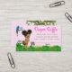 Boletos de rifa de pañales de safari de niña con adorable bebé afroamericana con cabello afro lindo y animales de safari para bebés sobre un fondo de jungla de damasco rosa. Estos boletos de rifa de pañales de safari de niña se personalizan fácilmente con su texto.