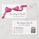 tarjeta de visita con temática de arco de bonito con un arco de bonito y cinta a la sombra de un rosa fucsia con fuentes negras. El diseño de las niñas es perfecto para una profesión en la industria de la belleza o en la industria del espectáculo. Agregue una url al código QR para que la gente pueda escanearlo con sus smartphones y encontrar fácilmente su presencia en línea.