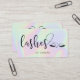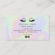 El diseño moderno combina el diseño de las tarjetas de visita con coloridas texturas holográficas falsas, cejas, pestañas y elegantes fuentes caligráficas.