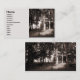 Una tarjeta de visita con una foto tomada al borde del bosque en Bute Park, Cardiff, Gales, Reino Unido, en blanco y negro de tono cálido. La foto fue tomada en el verano del 2008 y muestra los dramáticos contrastes en la luz del sol de la noche mientras brilla a través de los árboles recogiendo algunos troncos de árboles y follaje, pero dejando algunas partes en la sombra. Aunque estos bosques están en un parque de la ciudad, a menudo encuentro que este lugar parece estar encantado como si existiera tiempo y espacio exterior en un reino todo propio. Lo que se saca con la magia eterna de la fotografía en blanco y negro. La parte delantera de la tarjeta tiene un panel gris cálido de media anchura (hecho para coincidir con la foto) para el texto personalizado y la otra mitad muestra un detalle seleccionado de la foto completa. La parte posterior de la tarjeta muestra la imagen completa.