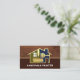 La cubierta presenta una capa superior de madera que se demarca de su parte inferior de color marrón oscuro por una línea dorada. En el centro se encuentra un exquisito diseño de marco dorado de "pincel casa". Cerca de la base de la tarjeta se encuentra el nombre comercial. En la parte superior, en una cubierta marrón oscura, está el logotipo de martillo dorado que se puede usar. A esto le sigue su prestigioso nombre, los datos de contacto y un pie de foto para publicitar sus servicios. Un gran diseño para temas prácticos y de construcción.