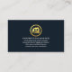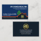 Un borde de construcción naranja cerca de la base delimita una capa azul superior contra su contraparte más oscura. Justo encima de la frontera está tu prestigioso nombre y título de trabajo con una opción de subtítulo de eslogan para publicitar tus servicios. En la esquina superior se encuentran el nombre de la empresa y los datos de contacto. Al dorso, en una cubierta azul oscuro, un logotipo dorado de paisaje residencial que se puede usar está en la parte superior. A esto le sigue su prestigioso nombre, los datos de contacto y un pie de foto para publicitar sus servicios. Una gran tarjeta para todos, especialmente para agencias inmobiliarias.