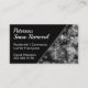 Una sorprendente tarjeta de visita negra con copos de nieve blancos sobre fondo negro. Esta gran tarjeta funcionaría bien para las compañías de remoción de nieve y limpieza de nieve, o para los servicios de arado de nieve. Fácil de personalizar con la información de su propia empresa.