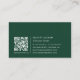 Las tarjetas botánicas de moda incluyen tu nombre o nombre de empresa flanqueado por un borde superior e inferior de hojas botánicas de acuarela pintadas en ricos tonos de cazador y verde forestal. Añada su información de contacto completa a la parte posterior en blanco sobre la coordinación de verde oscuro, junto con un código QR de personalizable.