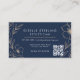 Tarjeta De Visita Botanical Navy Blue QR Code Esthetician Floral