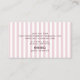 Haga una primera impresión memorable con esta elegante tarjeta de visita para niñeras - perfecta para niñeras, proveedores de cuidado infantil y niñeras. Con un suave arco rosado y un fondo clásico a rayas, este diseño combina el encanto con el profesionalismo para reflejar su cálida y confiable personalidad. El diseño limpio y minimalista presenta claramente la información de contacto, al tiempo que añade un toque agradable y acogedor que apreciarán los padres. Personalizable total con tu nombre, número de teléfono, correo electrónico, sitio web y usuarios de medios sociales, es una gran elección si eres un cuidador experimentado o recién empiezas. Esta tarjeta le ayuda a destacarse de una manera pulida pero accesible que los padres recordarán - y confiarán.