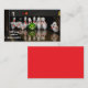A business card featuring a photo of bowling pins and a ball that have been turned into caricatures.