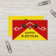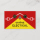 A red cover features a creative white electrical wiring circuit shaped into a rooftop frame. In its circuit you have two gold electrical symbols with a lampshade casting a bright yellow beam of light. Inside the beam lies your business name which you can change.