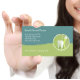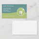 Brillantes y únicas tarjetas de negocios de oficina Dentista en un moderno y sencillo diseño en tonos verdes con emblema de dientes y cepillos de dientes de odontología en colores coordinados. Una plantilla online editable para la industria dental.